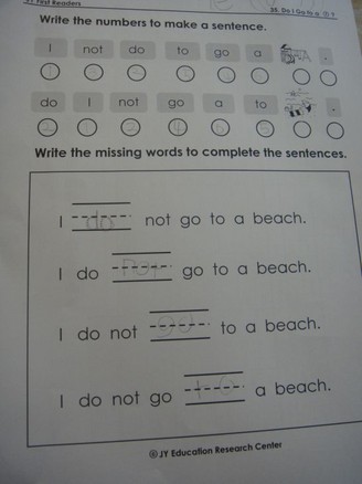 3) Activity book P35~36 ( Good match / A sentence caterpillar)