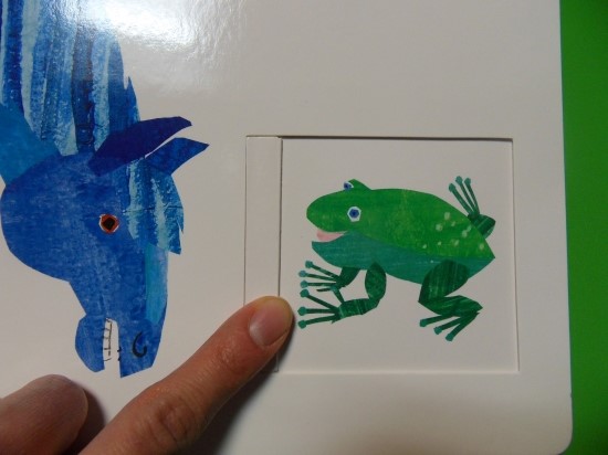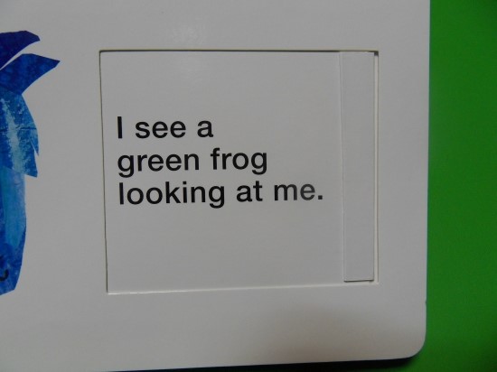 I see a green frog looking at me.