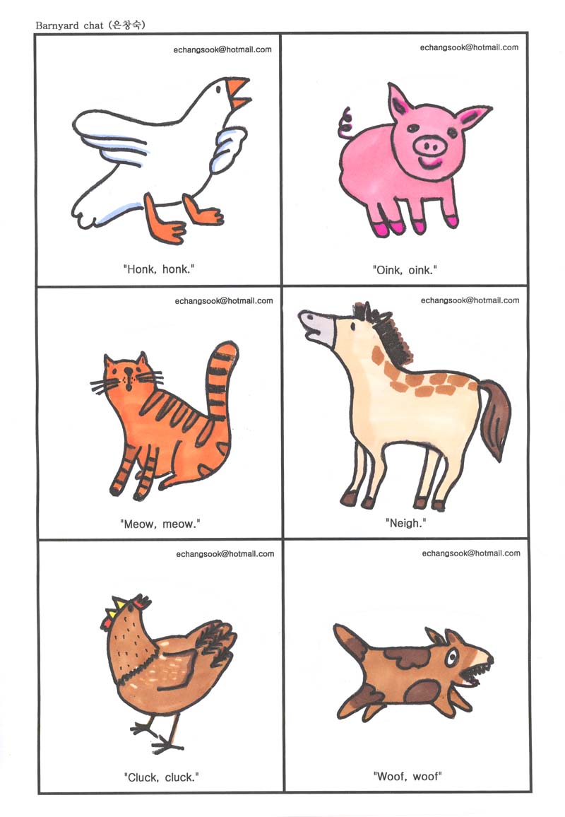 (horse-neigh) (pigs-oink) (chicken-cluck)