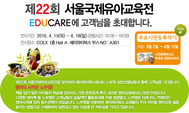 Growing a Successful ReaderSuccessful Reader¸¦ ±æ·¯³»±â À§ÇÏ¿© ¾ÆÀ̵éÀÇ ¿¬·É°ú »óȲ¿¡ ¸Â´Â ´Ù¾çÇÑ Ã¥µéÀÌ Á¦ÀÌ¿ÍÀ̺Ͻº¿¡ ÁغñµÇ¾î ÀÖ½À´Ï´Ù. ´Ù¸¸, Àü½ÃÀåÀÌ ºñÁ¼Àº °ü°è·Î ¸ðµç »óǰÀ» ÁغñÇÏÁö ¸øÇÏ´Â Á¡ Á˼۽º·´°Ô »ý°¢ÇÕ´Ï´Ù. (Àü½ÃÀå¿¡¼ ±¸¸ÅÇÏÁö ¸øÇϽŠ»óǰÀ̳ª °í°´´ÔµéÀÇ ±¸¸Å Æ÷ÀÎÆ® ´©Àû(ÀÏÁ¤±Ý¾× ÀÌ»ó ½Ç½Ã) µîÀº ¿µ¾î¿Í °³²Á¡¿¡¼ ½ÃÇàÇØ µå¸± ¿¹Á¤ÀÔ´Ï´Ù.) * Àü½Ãȸ µ¿ÀÏ ±â°£µ¿¾È Á¦2ȸ ¿Â¶óÀÎ À¯¾Æ±³À°ÀüÀ» ½Ç½ÃÇÒ ¿¹Á¤ÀÌ¿À´Ï, °í°´´ÔÀÇ ¸¹Àº °ü½É°ú Âü¿©¸¦ ºÎʵ右´Ï´Ù. °¨»çÇÕ´Ï´Ù.